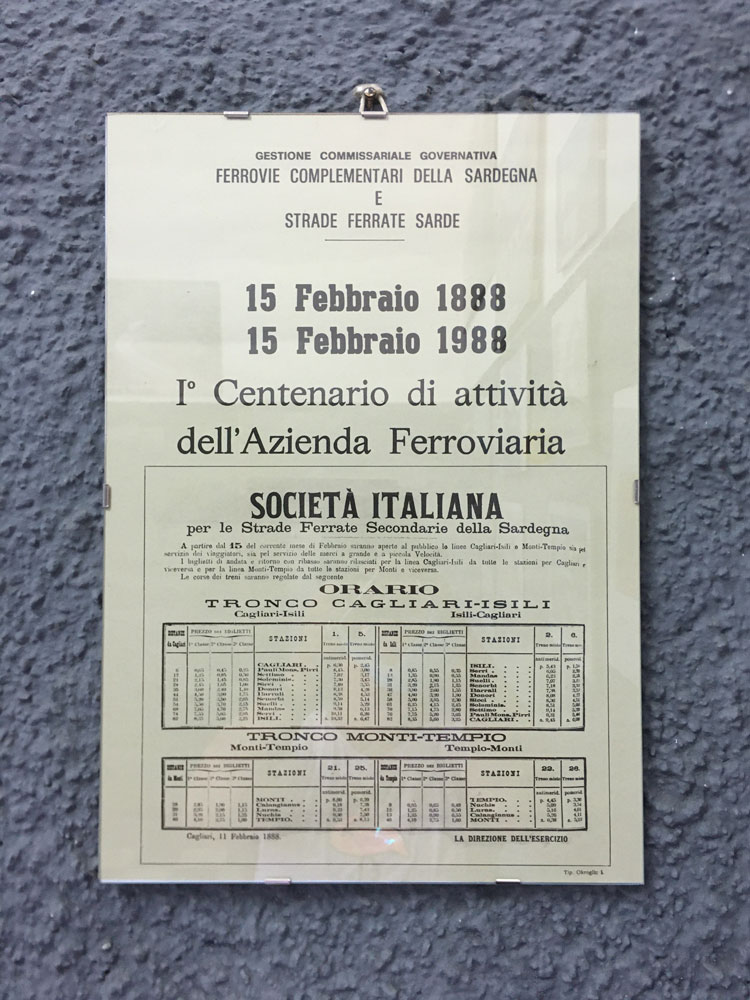 Il capolinea dell’escursione, la stazione di Laconi, è un luogo magico, avvolto nel passato. Stampe d’epoca, la postazione del bigliettaio, tutto all’interno di questo edificio parla della storia di questa antica ferrovia.